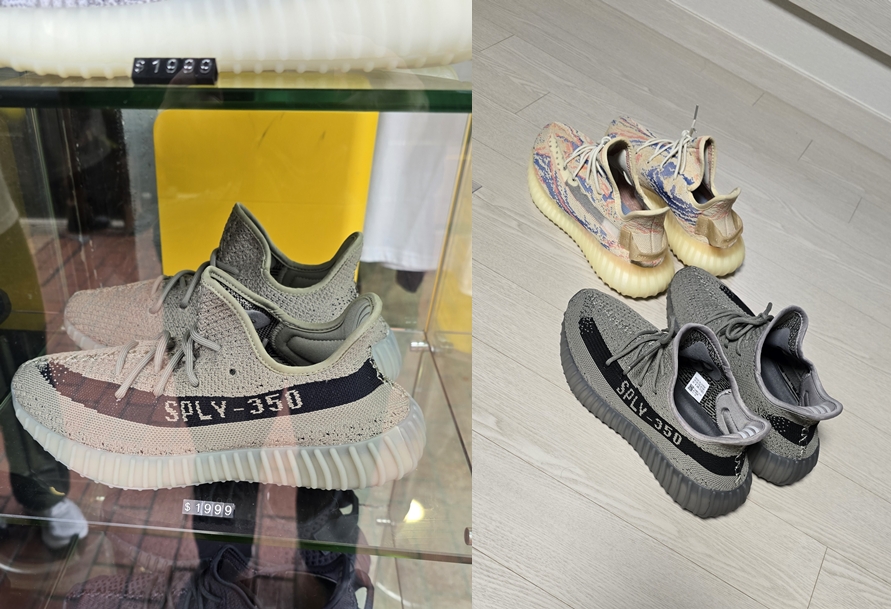 오른쪽 사진의 Yeezy 시리즈 런닝화다 그 시장을 나오면서